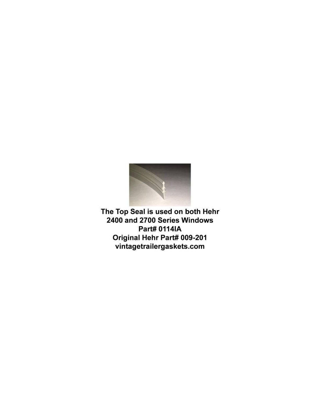 The seal slips into the channel at the top of the window. The window series and part numbers can be found stamped into the lower half of the left vertical aluminum frame member. Our engineering team has reproduced this seal to exacting specifications by taking measurements from actual windows and finally fit checking to ensure an exact fit. The original Hehr part number was 009-201.