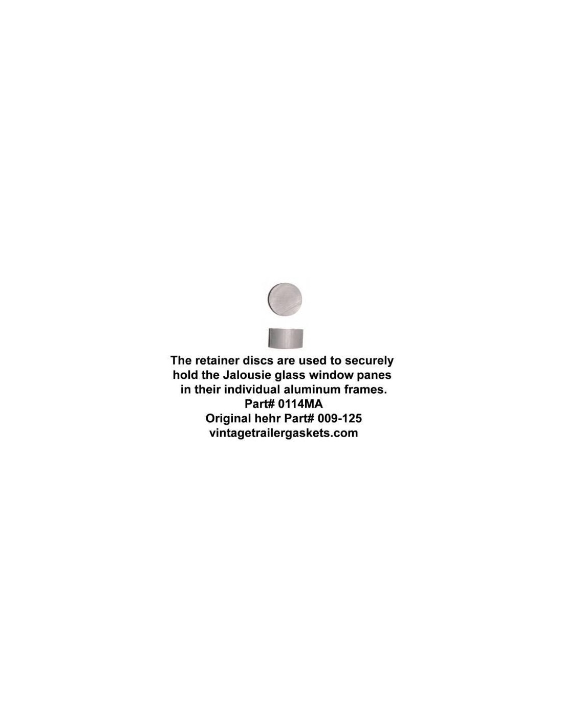 The retainer discs are used to securely hold the Hehr Series 1600 1626 and 2400 2401 Jalousie glass window panes in their individual aluminum frames. The discs are sold in packages of 25. Color: Grey