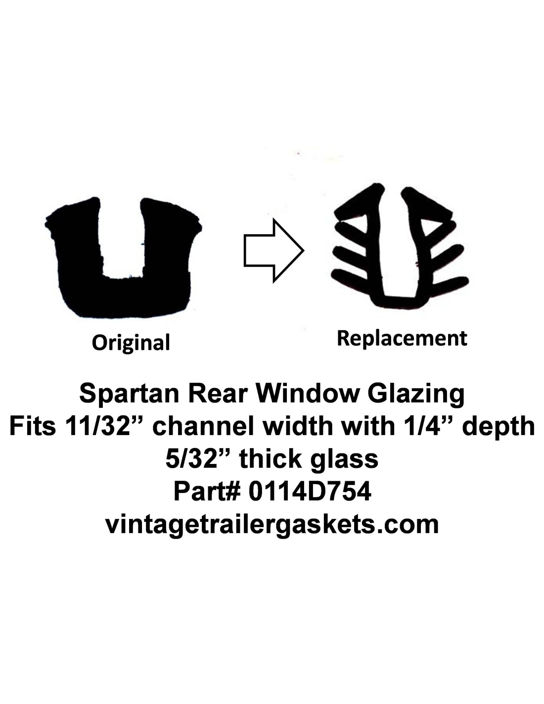 This vinyl glazing will seat 5/32" glass in the rear windows of Spartan trailers. The window glazing channel was 11/32" wide and 1/4" deep.