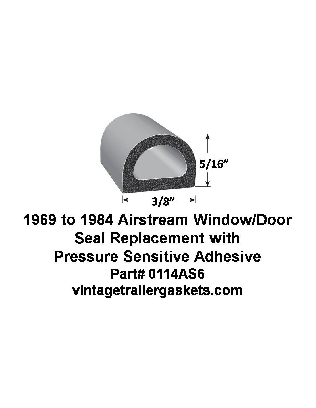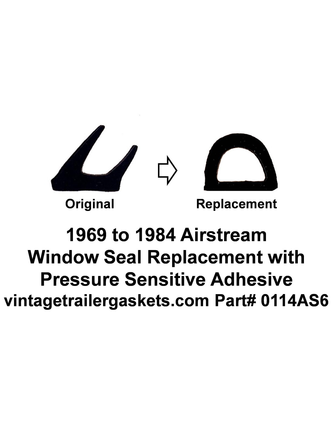 Window seal for curved side windows with aluminum frame and utility doors. Replaces seal used on Airstream windows and utility doors manufactured from 1969 to 1986. This seal is also used as the replacement for 1945 to 1950 Air-O-Lite window seals and 1948 to 1958 Woodlin window seals. Sold by the foot in continuous lengths.