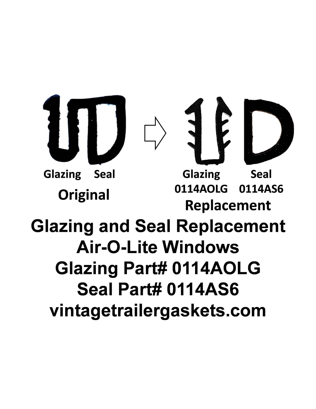 The original Air-O-Lite window seal was a single seal with two parts: a glazing part and a seal part. This seal replaces the seal part of the original seal. Part# 0114AOLG replaces the glazing part of the original seal.